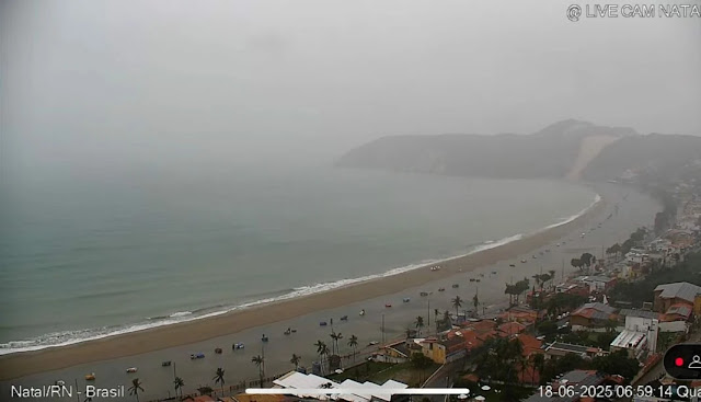 A engorda de Ponta Negra amanheceu alagada nesta quarta-feira (18), após fortes chuvas em Natal. A faixa de areia registrou acúmulo de água após as precipitações. A situação se repete e é denominada de “espelhos d’agua”. Nas últimas vezes que o fenômeno ocorreu, a Secretaria de Infraestrutura (Seinfra) declarou que é necessário um tempo ensolarado para que a água evapore.