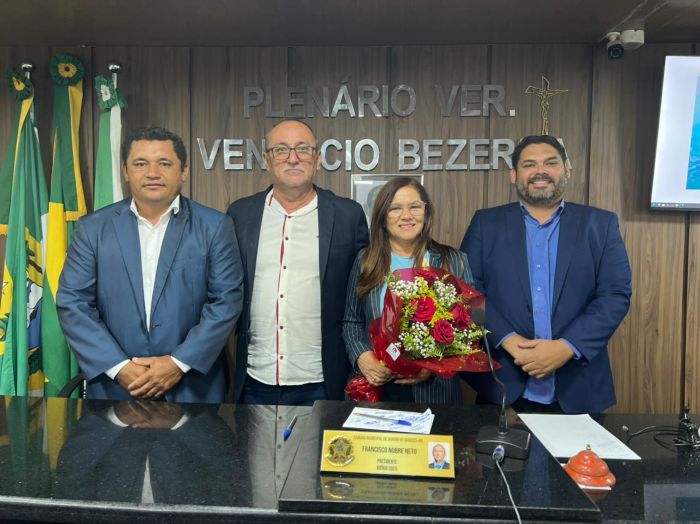 A Câmara Municipal de Jardim de Angicos elegeu, nesta segunda-feira (15), por unanimidade, a vereadora Sandra Melo como presidente para o ano de 2026. A Mesa Diretora será formada ainda por Francisco Nobre (vice-presidente), José Humberto (1º secretário) e Sebastião Soares (2º secretário).